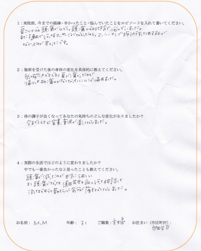 もし、頭痛になっても須田先生の所へ行って相談して治してもらおうと昔みたいに気分が落ちなくなりました。